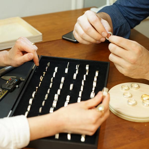 The best and accurate way is to get their finger measured in at a jewelry store. But if you don’t want to spoil the surprise, try taking a ring they wear on their ring finger and seeing if it fits one of yours. Then we can measure your finger during our consultation. Alternatively, you can bring in one of their rings to us and we can measure the ring. Not all designs can be resized once the stones are set, so please let us know if you are unsure of the size. We offer one complimentary ring sizing the first 3 months after purchase.